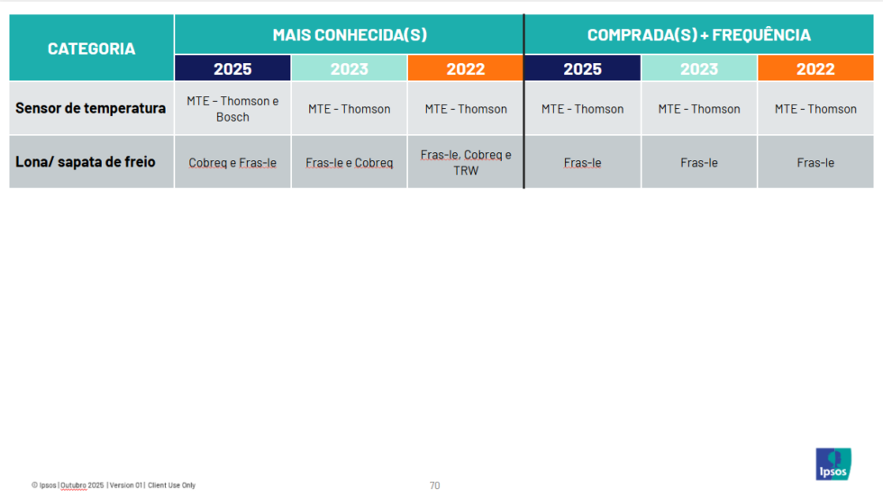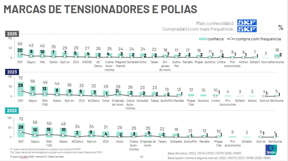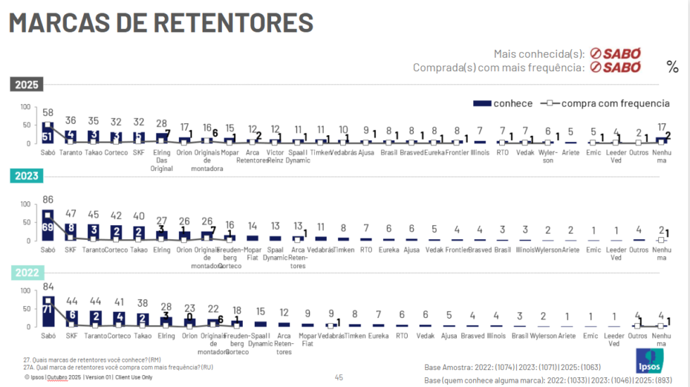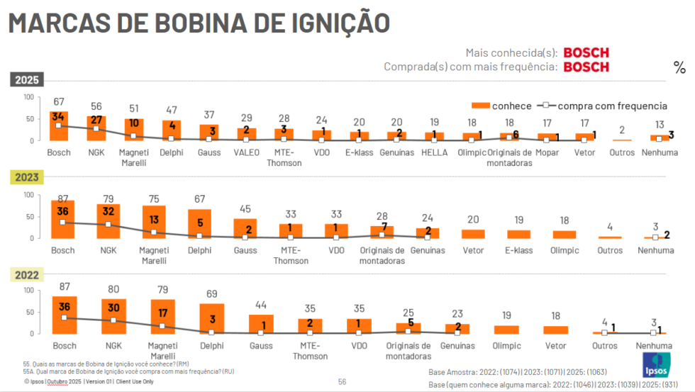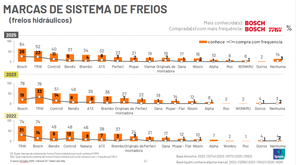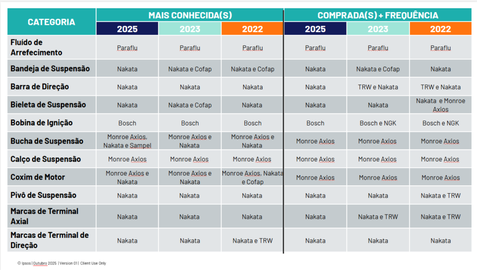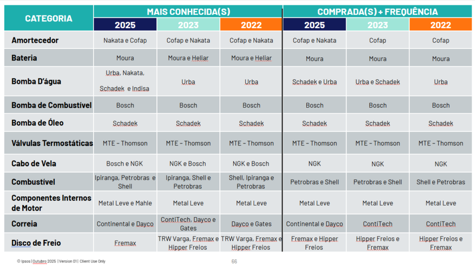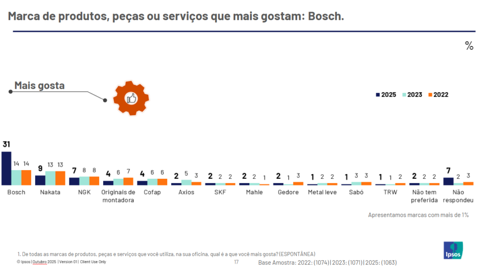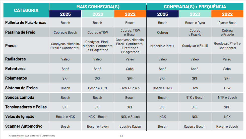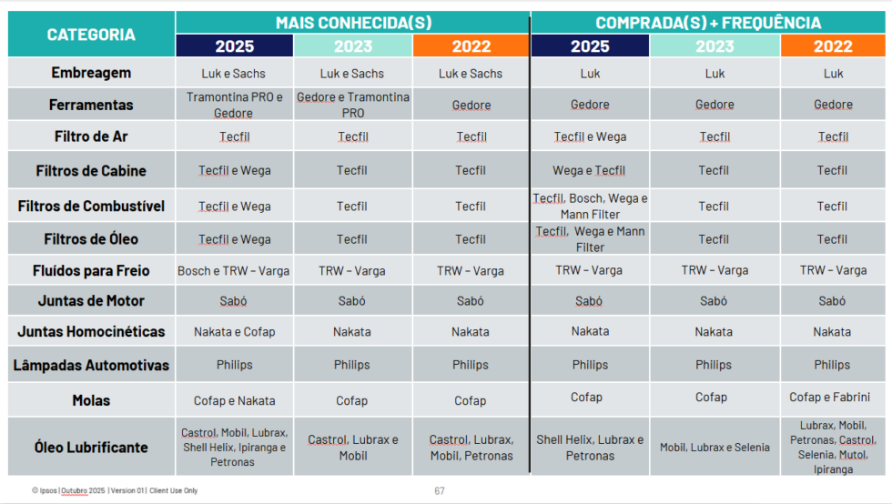 Levantamento da Revista O Mecânico em parceria com o instituto Ipsos-Ipec apresenta as marcas mais lembradas e utilizadas pelos profissionais em todo o Brasil